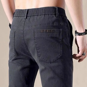 夏季烟灰色牛仔裤男宽松直筒裤中老年复古休闲高腰裤子...