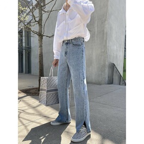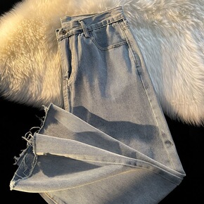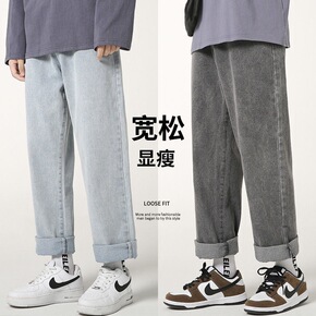 港风毛边牛仔裤男夏季薄款宽松直筒美式潮流炸街痞帅阔...