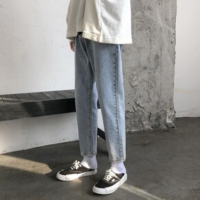 网红裤子男九分裤春季修身小脚直筒牛仔裤韩版潮流男生...