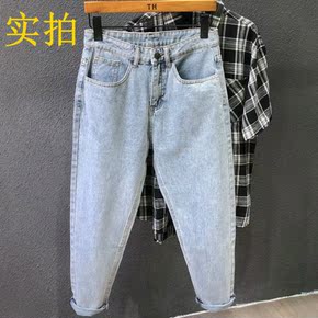 夏季新款学生破洞九分牛仔裤韩版潮流束腰修身宽松休闲...