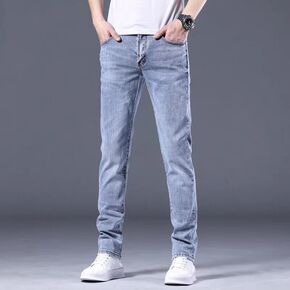 夏季薄款牛仔裤男士弹力青少年修身小脚裤2022新款...