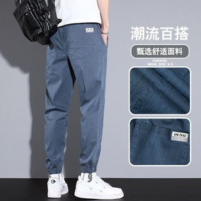 夏季薄款休闲裤男潮牌宽松帅气哈伦束脚九分裤潮流青少...