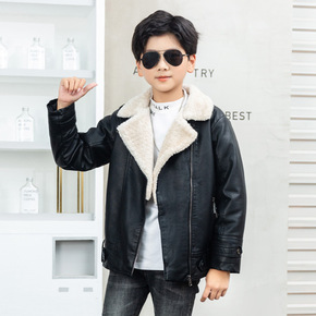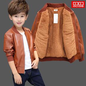 韩版童装外套2020秋冬新款男孩宝宝皮夹克加绒加厚...