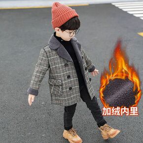 M男童毛呢外套秋冬儿童呢子大衣洋气格子宝宝羊羔毛潮...