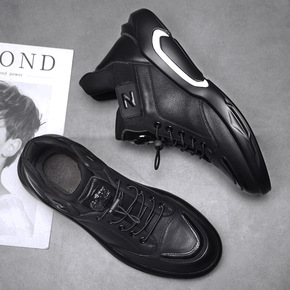 冬季新款男韩版高帮鞋鳄鱼纹男士休闲皮鞋中帮马丁靴英...