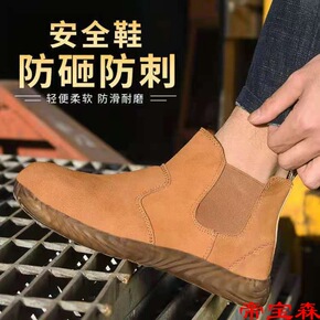 劳保鞋男夏季牛皮钢包头防砸防刺穿牛皮透气工地电焊工...