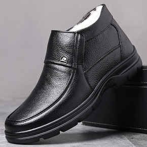 冬季棉鞋男保暖加绒加厚男士休闲高帮棉鞋中老年皮棉鞋...