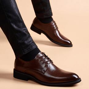 春夏季新款男士皮鞋内男鞋青年英伦正装商务系带休闲鞋...