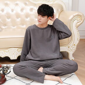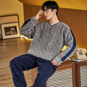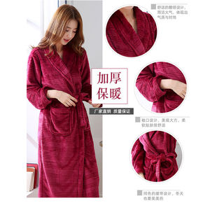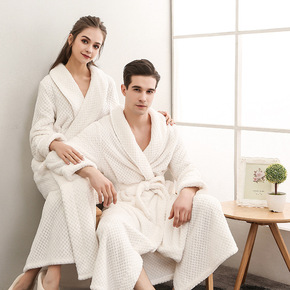 法兰绒秋冬季睡袍女男中长款加厚珊瑚绒睡衣情侣浴袍男...