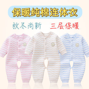 秋季新款爬服休闲加厚保暖婴儿连体衣夹棉暗扣婴儿睡衣...