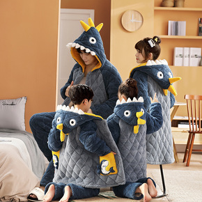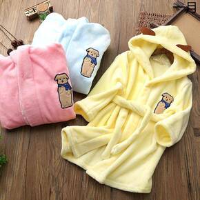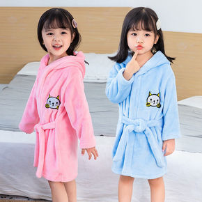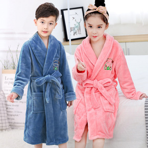 儿童法兰绒睡袍秋冬季加厚男童女童小孩子长款睡衣宝宝...
