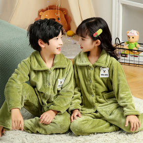 秋冬季儿童法兰绒睡衣男童宝宝女童家居服女孩加厚冬款...