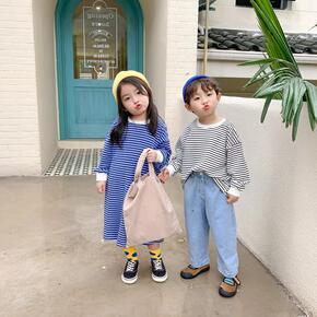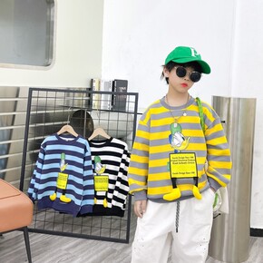 2020新款儿童卫衣时尚条纹卡通套头衫中小童春秋卫...