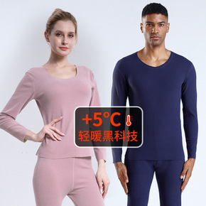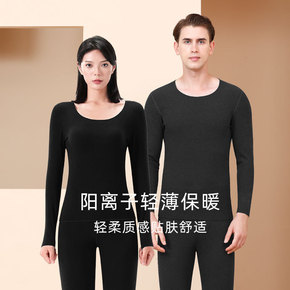 新款阳离子无痕发热秋衣秋裤男 修身AB面情侣德绒保...