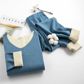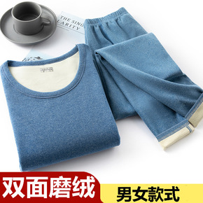 新款双面绒磨毛无痕保暖内衣男女士修身秋衣秋裤套装打...