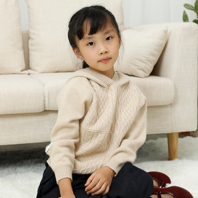儿童套头羊绒衫女童舒适外搭连帽衫洋气亲肤韩版秋冬新...