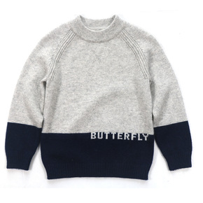 儿童套头羊绒衫2021秋冬新款洋气拼接字母中小童打...