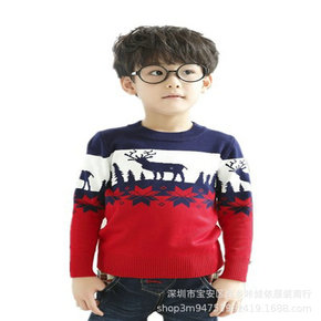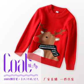 儿童羊毛衫冬季男女童毛衣红色小鹿圣诞新年中小童10...