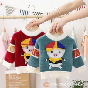 2021秋冬新款亲肤儿童羊绒衫韩版卡通人物儿童毛衣...