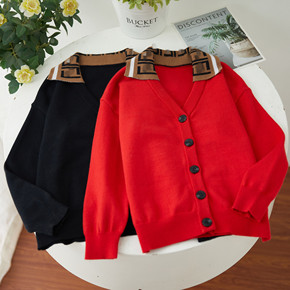 2022新品秋冬儿童毛衣 字母长袖开衫羊绒衫领儿童...