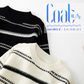 儿童羊毛衫冬季男女童毛衣韩版条纹100%纯羊毛衫兄...