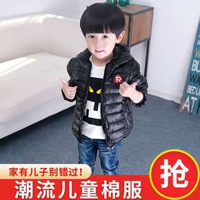 2021秋冬新款连帽羽绒棉衣短款棉袄中小童男女童棉...