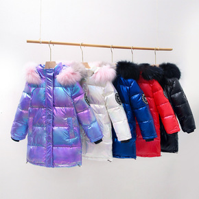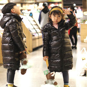男童羽绒服中大童装外套女童羽绒服中长款收腰连帽拼色...