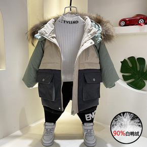 男童羽绒服2021新款洋气宝宝90白鸭绒儿童中长款...