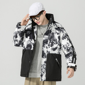 羽绒服男2021新款冬情侣装潮牌短款白鸭绒羽绒服保...