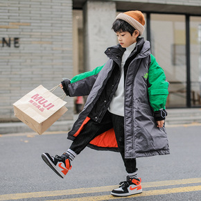 童装男童羽绒服冬装新款中大童韩版儿童拼色长款羽绒外...