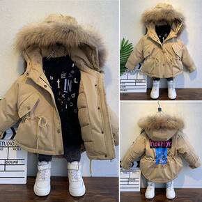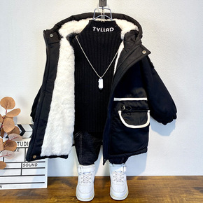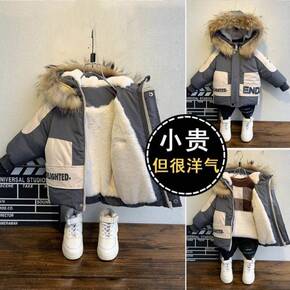 男童冬装加绒派克服202新款小儿童洋气中长款加厚棉...