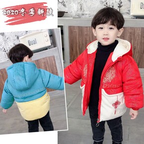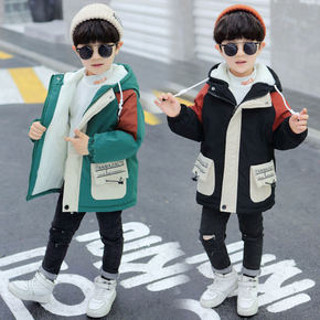 男童棉服冬装外套202新款儿童洋气加绒加厚棉衣中长...