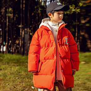原D韩版男童冬季中长款红色羽绒服过年外套TKJD2...