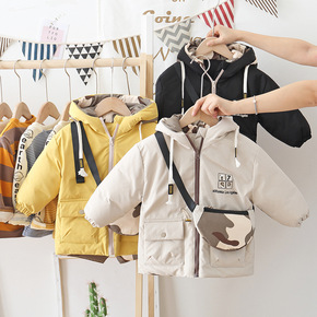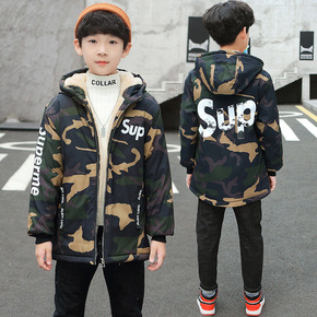 男童棉服外套冬装新款儿童装中长款加厚迷彩棉衣中大童...
