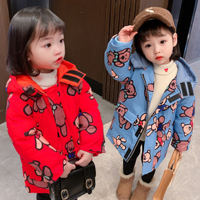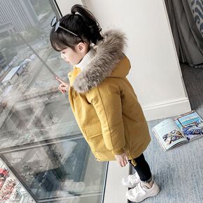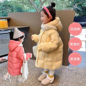 女童加厚保暖棉衣洋气韩版2021新款中长款小女孩棉...