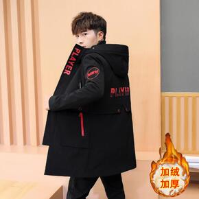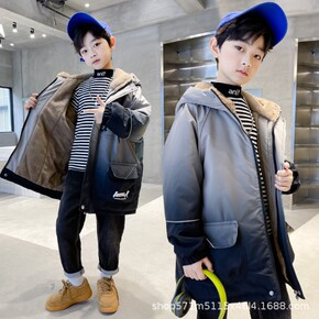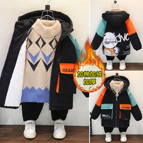 男童棉衣2021新款冬装儿童加绒加厚洋气中长款棉服...