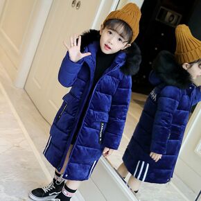 儿童棉衣女童金丝绒棉袄2021冬装新款中长款宝宝棉...