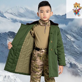 儿童羽绒服军大衣加棉加厚保暖中长款军绿色外套老式棉...