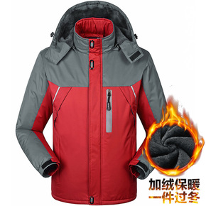 秋冬季男士欧美简约可拆卸连帽加绒加厚冲锋衣羽绒棉服...