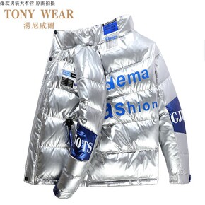 棉衣男士冬季加厚保暖面包服外套潮牌亮面反光棉袄潮流...