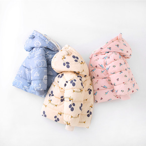反季促销婴幼童秋冬款棉袄男女宝宝纯色耳朵连帽轻薄羽...