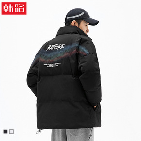韩路日系男装2021冬新款潮牌羽绒棉服男彩虹印花加...