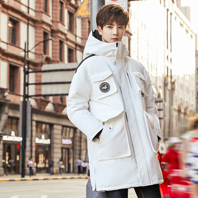 大毛领羽绒服男中长款加厚白鸭绒韩版秋冬工装连帽男士...