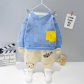 2821 儿童休闲套装 男女童卡通熊加绒加厚圆领二...