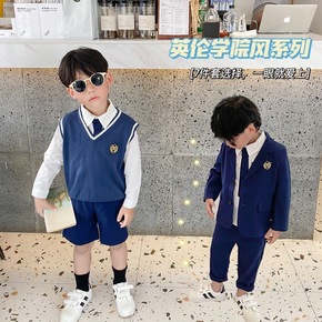 陈大猪辰辰妈 男童西装套装学院风两件套儿童装背心衬...