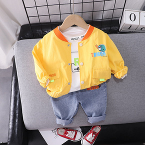 男童套装春秋款男孩子帅气工装风上衣两件套宝宝日韩系...