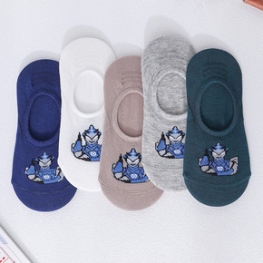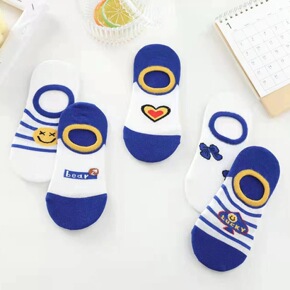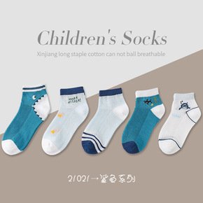 儿童夏季薄款网眼全棉隐形袜蓝色卡通日系网红潮款男孩...