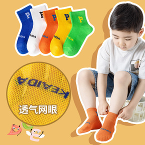 5双装 儿童袜子夏季薄款棉短筒袜男童透气网眼袜潮流...