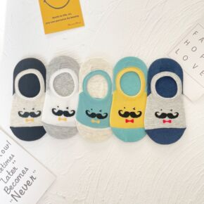 爱嘀嗒儿童袜夏季薄款船袜精梳棉男童不掉跟卡通小胡子...