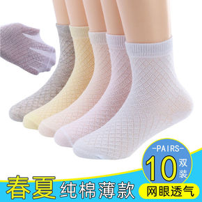 儿童袜子夏季薄款纯色棉男童网眼船袜透气春秋中大童女...